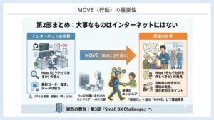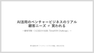 実際のビジネス開発においては、まず顧客や業務を解像度高く理解すること、そして小さな規模でも具体的な課題を確実に解決する「Small DX Challenge」という実践の場をお伝えしました。